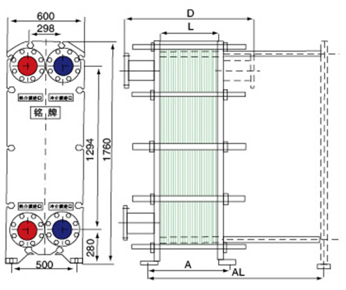 可拆式板式换热器主要由传热板片、密封垫片、两端压板、夹紧螺栓、支架、法兰或衬套、地脚组成。各部件作用如下: